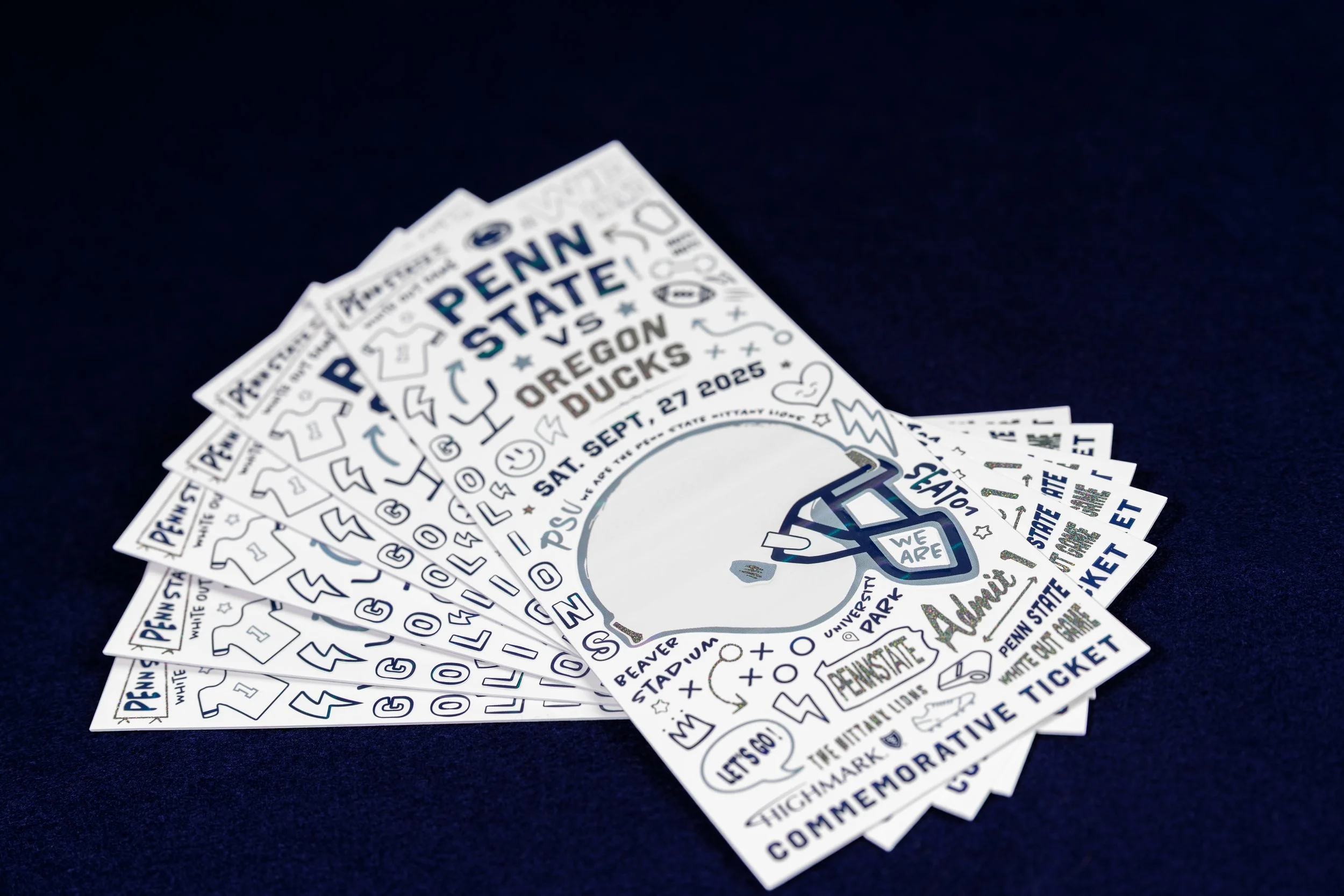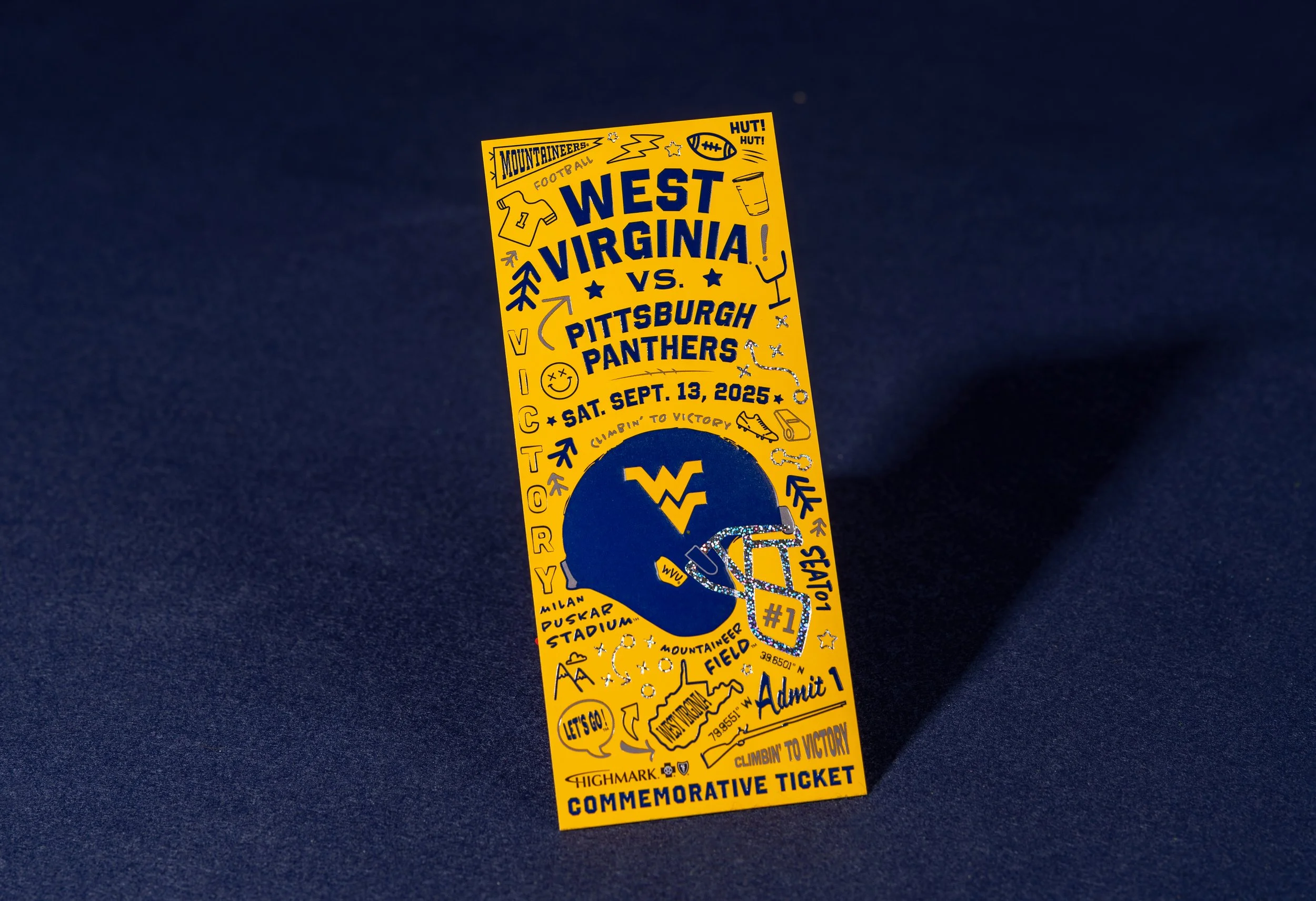For the past three years, Highmark Health has created commemorative tickets for NCAA football games, offering a limited number to fans at each event. These tickets serve as cherished keepsakes, so the goal is to make them unique in both design and material. This year, we chose a more chaotic pattern that is both eye-catching and distinctive. This opposite approach works well to juxtapose the design from the previous year while still feeling connected and part of a series.